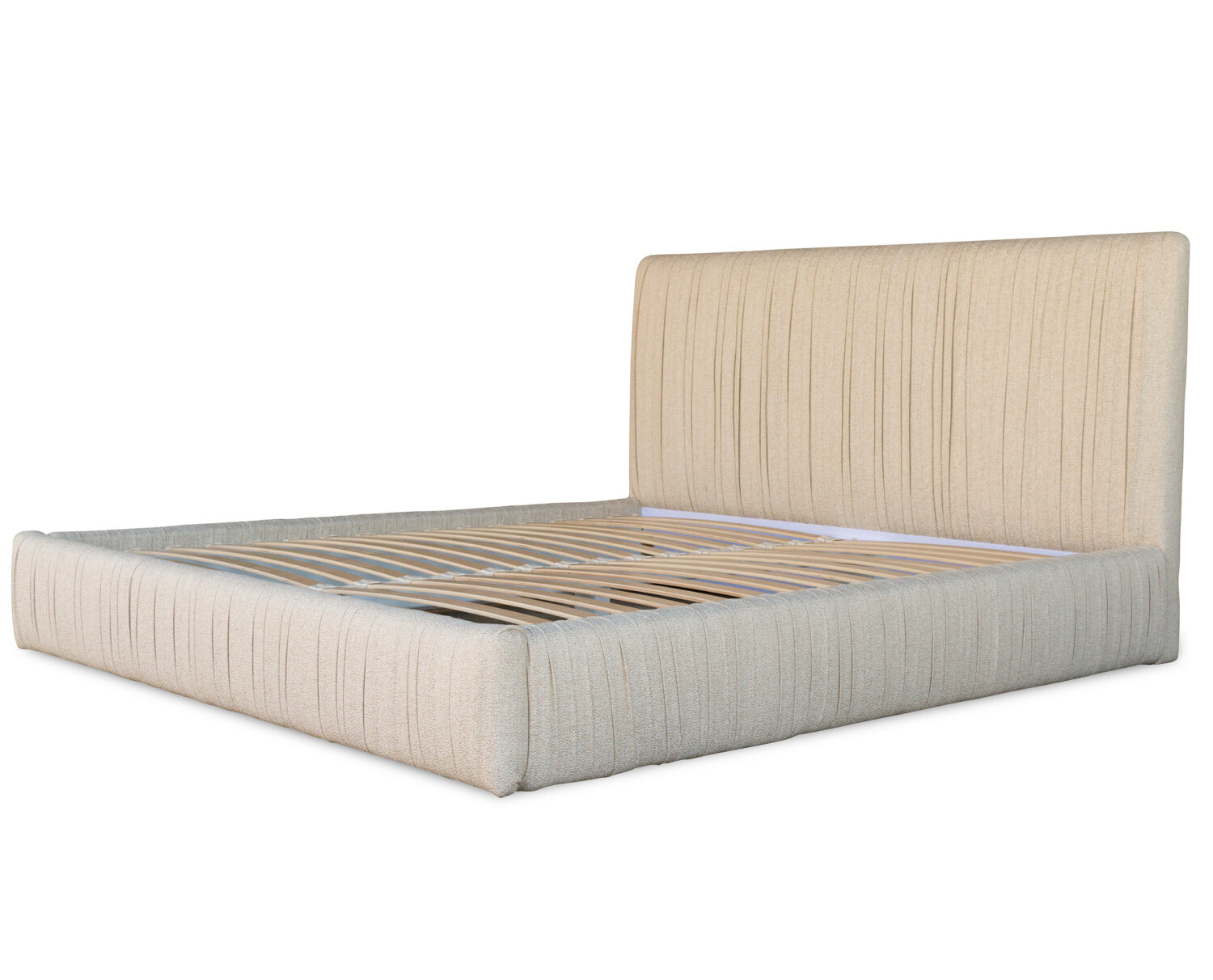 The Kylie bed frame is made out of solid timber and features a upholstered headboard and base. Made with European orthopaedic slats. A sophisticated piece made in an enduring style.