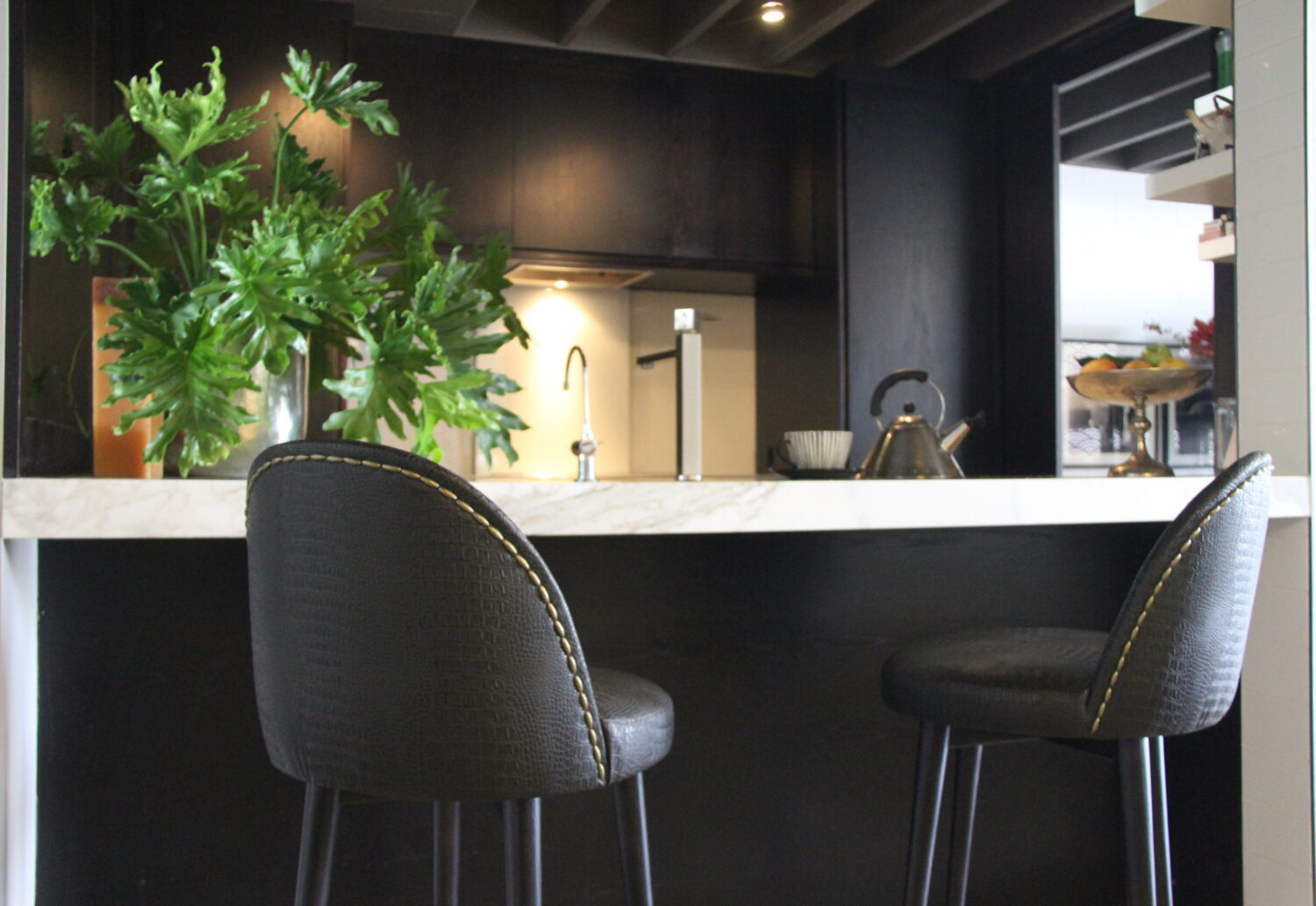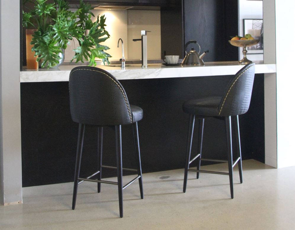 The Misty bar stool meticulously crafted with solid Vic ash legs stained Walnut, the barstool features a generous upholstered seat and backrest that feel comfortably smooth and look absolutely classy.