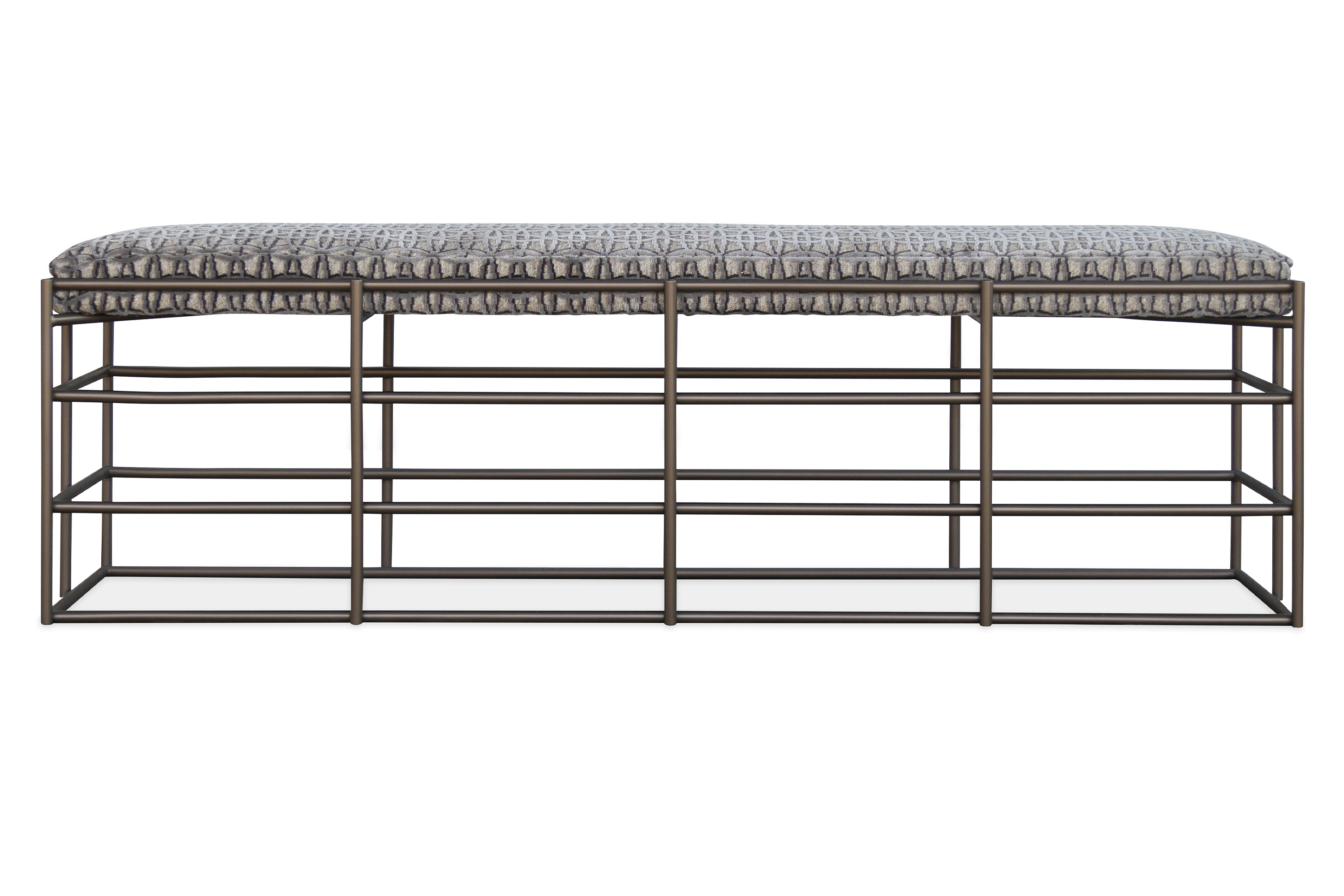 Defined by repetition and lines, Nicolette presents an airy and refined form. Made to order, with a stand out metallic finish and upholstered seat, this is a versatile piece. The Nicolette is available in a variety of shapes, including rounded.
