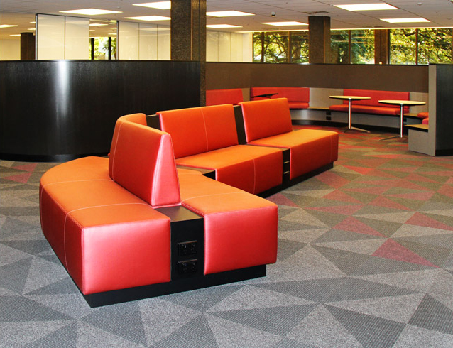 Our Luka Banquette in orange with Vic ash stained black for the University of Sydney.